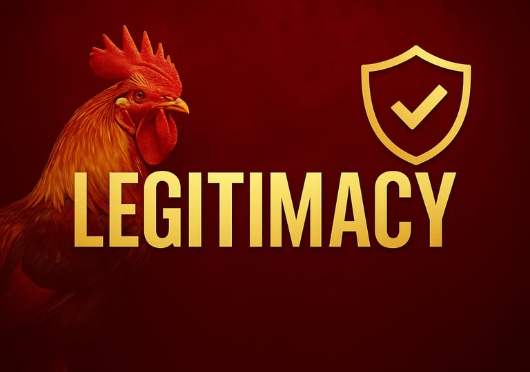 Would you like me to generate a matching landscape image banner for this “Legitimacy” post (dark red and gold theme, with roosters, shield icons, and a subtle trust-focused design)?
